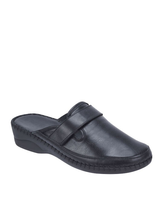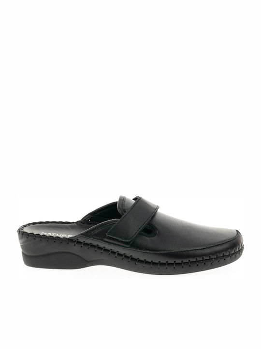 Naturelle 30011Μ Ανατομικές Δερμάτινες Γυναικείες Παντόφλες σε Μαύρο Χρώμα